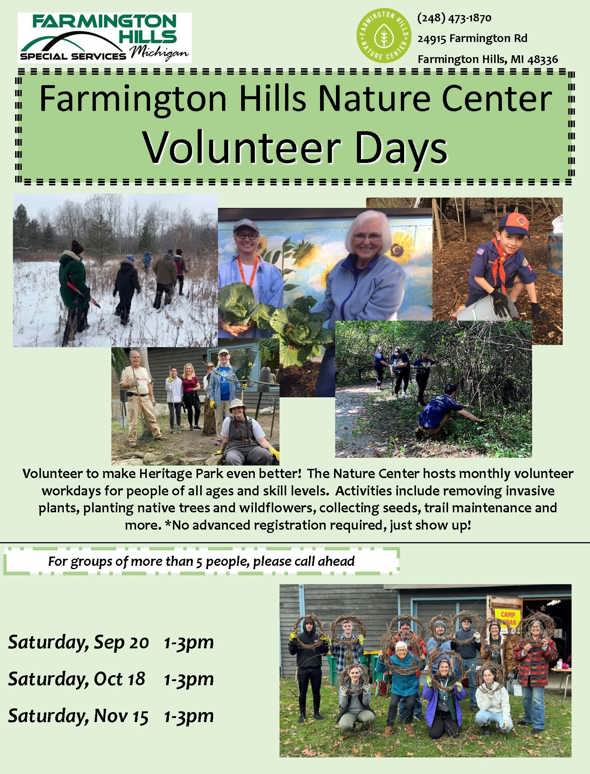 Call (248) 473-1870 for more info or to organize a private volunteer day for your business or organization.