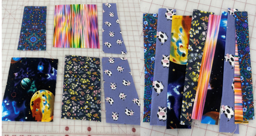 Step two- Press a ¼” seam along all of your scraps. This will make it easier to sew them together!