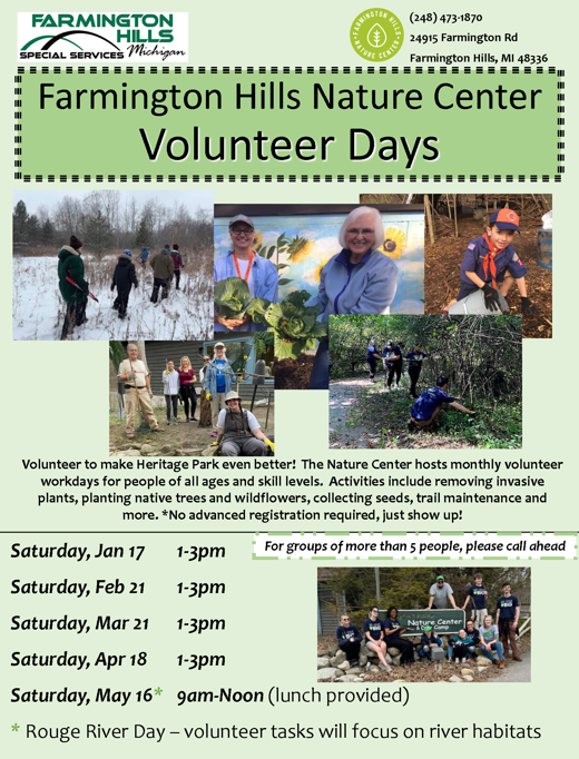 Call (248) 473-1870 for more info or to organize a private volunteer day for your business or organization.