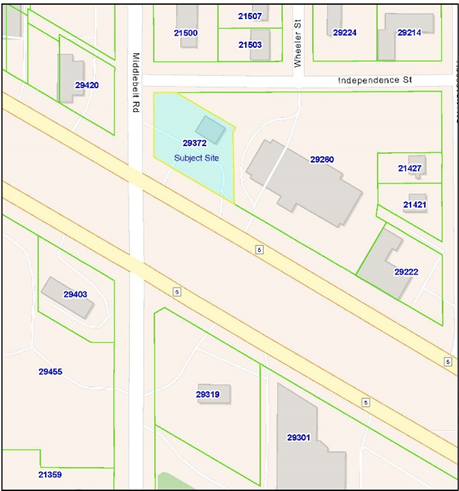 The subject property is located at 29372 Grand River Avenue; Parcel Identification Number: 22-23-36-301-002; City of Farmington Hills, Oakland County, Michigan.